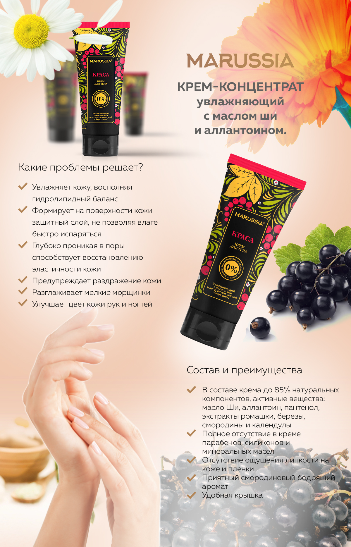Для ежедневного ухода за сухой и требовательной кожей рук. Увлажняет и активизирует жизненные процессы в тканях, разглаживает кожу, устраняет шелушение, сохраняя естественный баланс влажности. Содержит комплекс из ценных масел авокадо и ши, экстрактов смородины и ромашки, пантенола и аллантоина. Не жирная, сливочная текстура крема глубоко увлажняет и снабжает кожу рук необходимыми липидами.