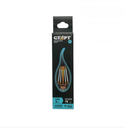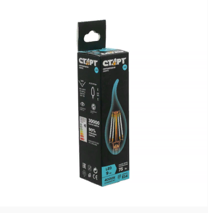 - Наименование: лампа светодиодная СТАРТ LED F-FlameE14 9W40