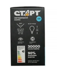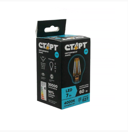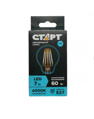 - Наименование: лампа светодиодная СТАРТ LED F-GLSE27 7W40