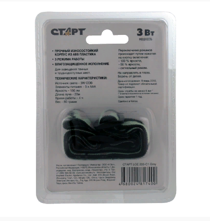Фонарь налобный СТАРТ LOE 203-C1 Grey