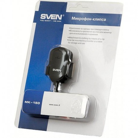 Модель относится к электретному типу микрофонов. Миниатюрные размеры Sven MK-150 позволяют прикрепить его на одежду пользователя при помощи клипсы, также в комплекте Вы найдете специальный крепеж, благодаря которому устройство можно установить на корпус монитора или разместить на столе. С Sven MK-150 больше не придется путаться в длинных проводах.
